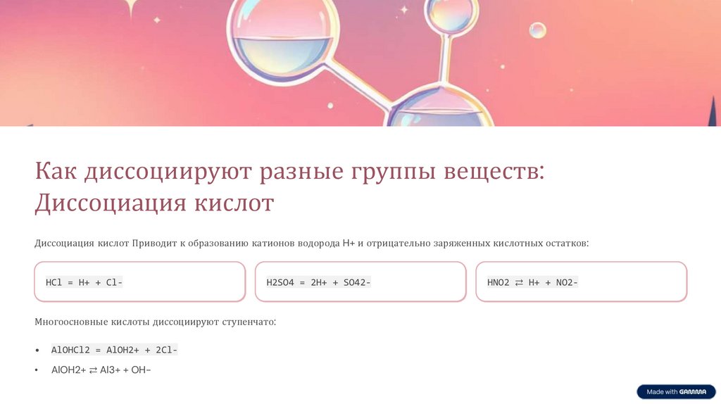Как диссоциируют разные группы веществ:Диссоциация кислот