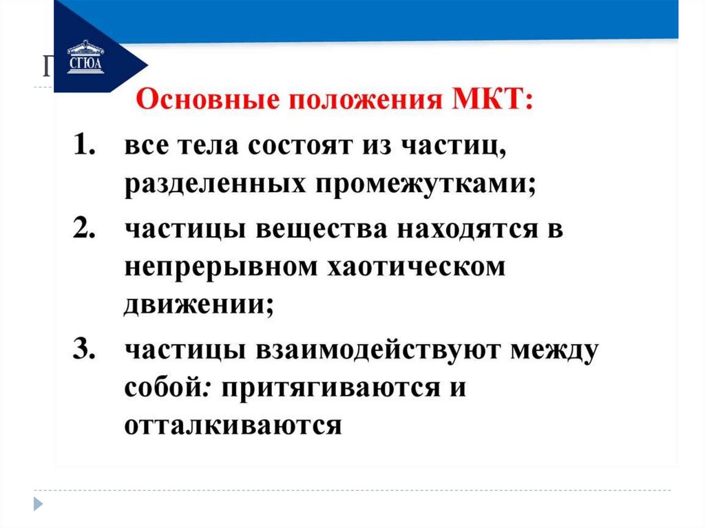 2)Положение МКТ :Молекулы непрерывно и хаотически движутся