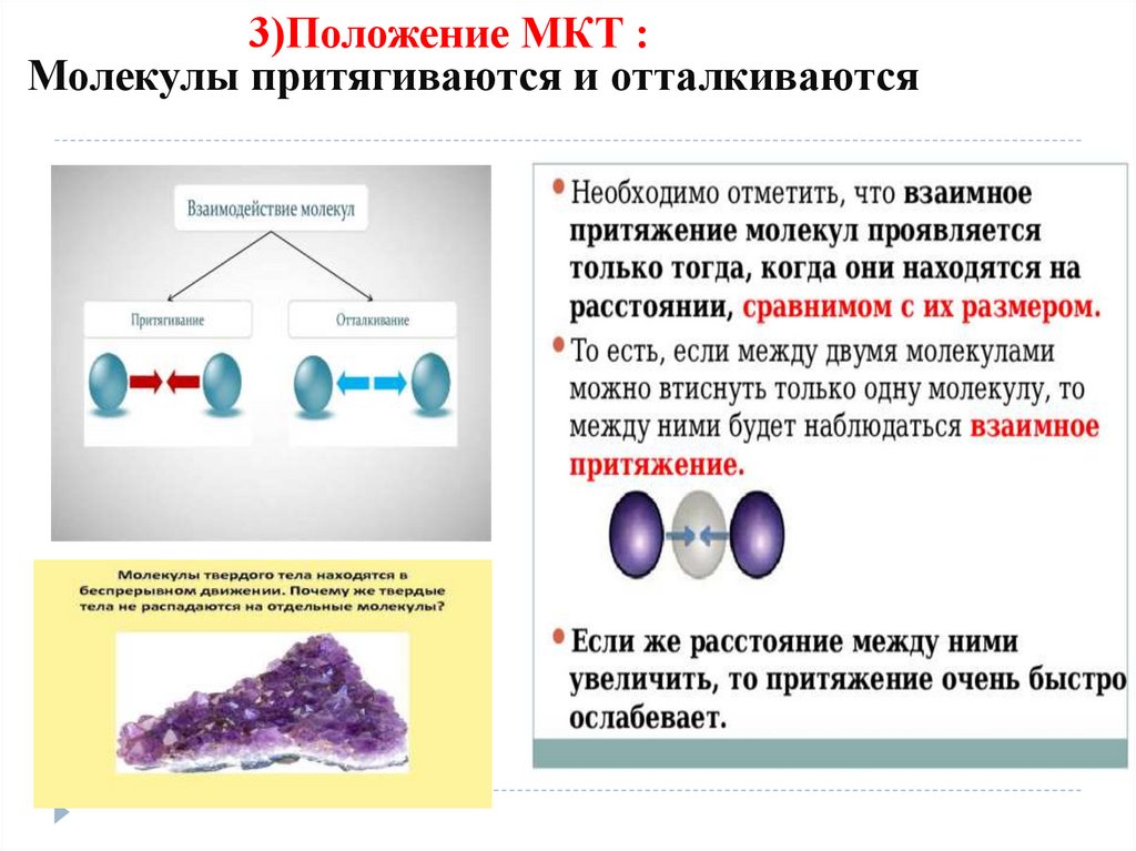 3)Положение МКТ :Молекулы притягиваются и отталкиваются