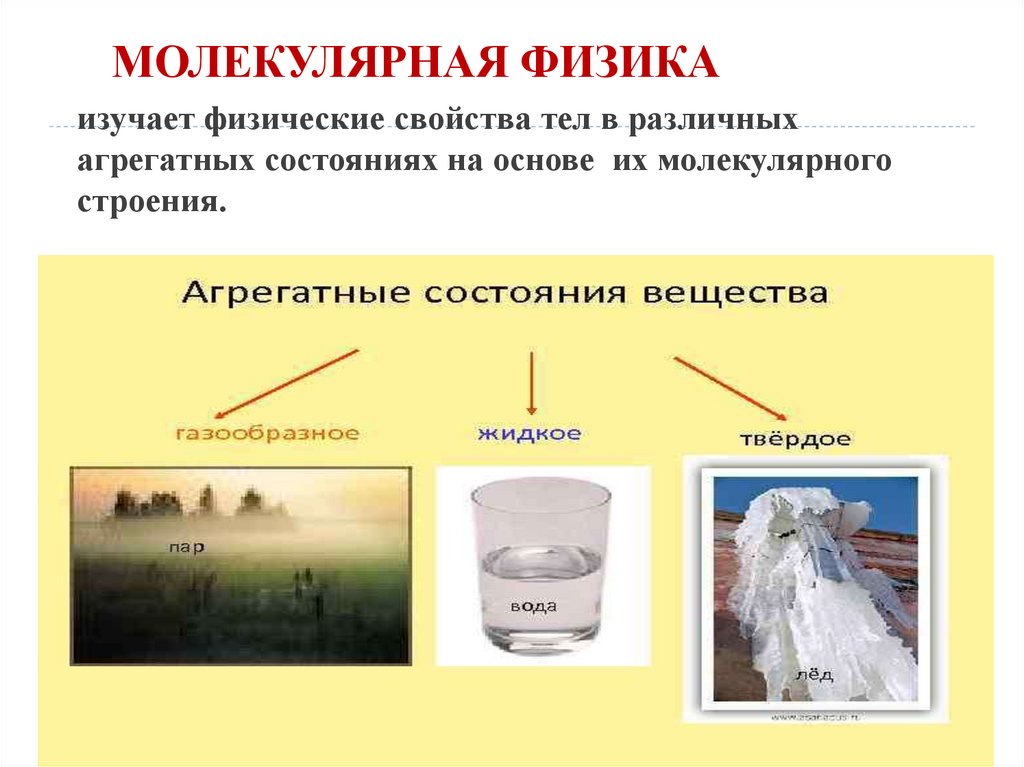 МОЛЕКУЛЯРНАЯ ФИЗИКАизучает физические свойства тел в различных