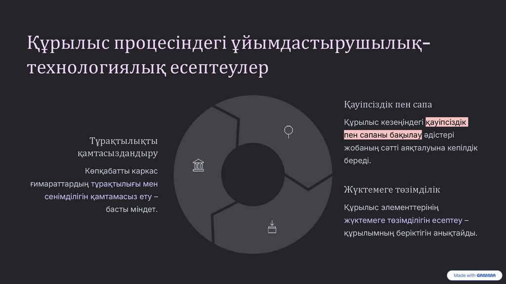 Құрылыс процесіндегі ұйымдастырушылықтехнологиялық есептеулерҚауіпсіздік пен сапа