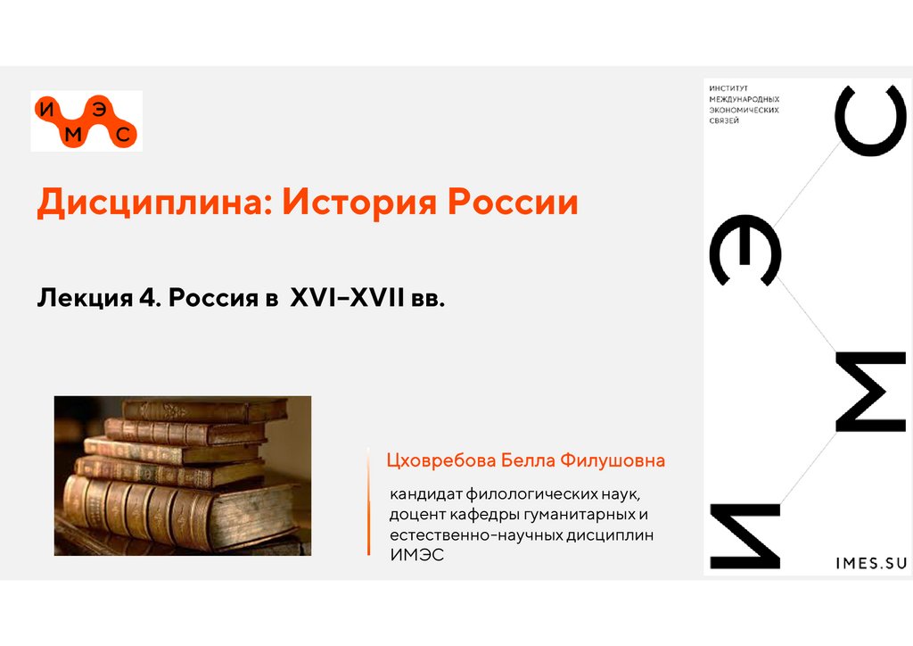 Дисциплина: История РоссииЛекция 4. Россия в XVI–XVII вв.