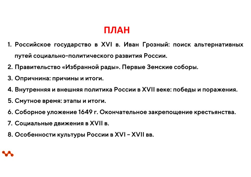 ПЛАН1. Российское государство в XVI в. Иван Грозный: поиск альтернативных