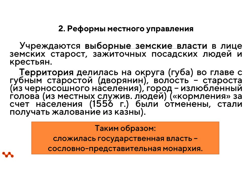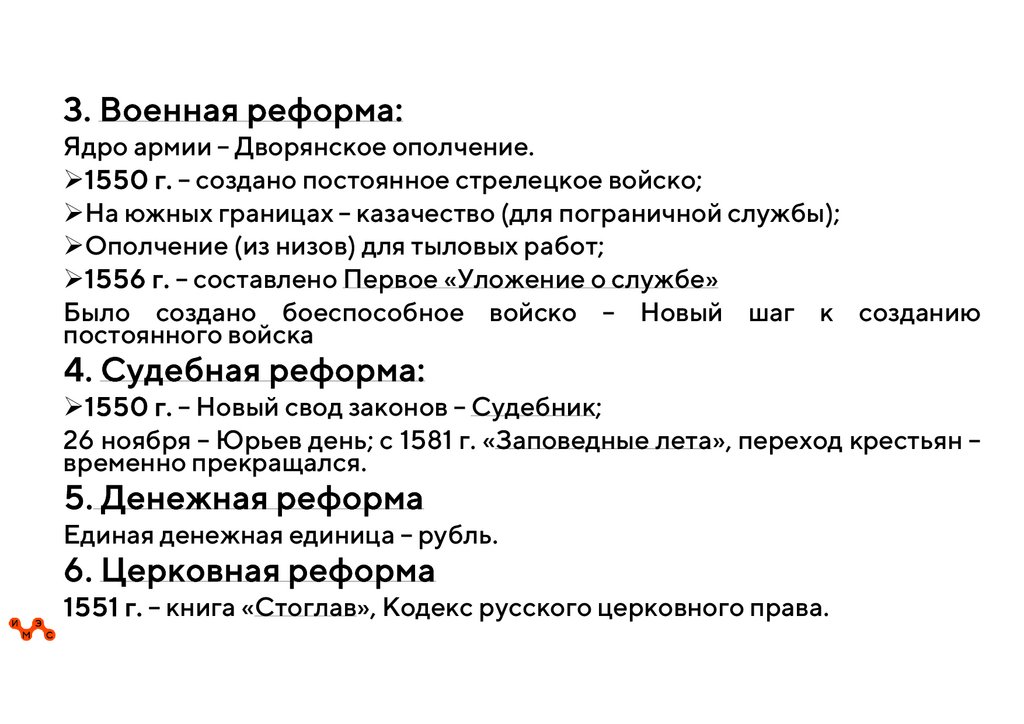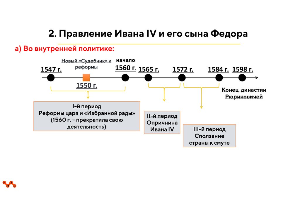 2. Правление Ивана IV и его сына Федораа) Во внутренней политике: