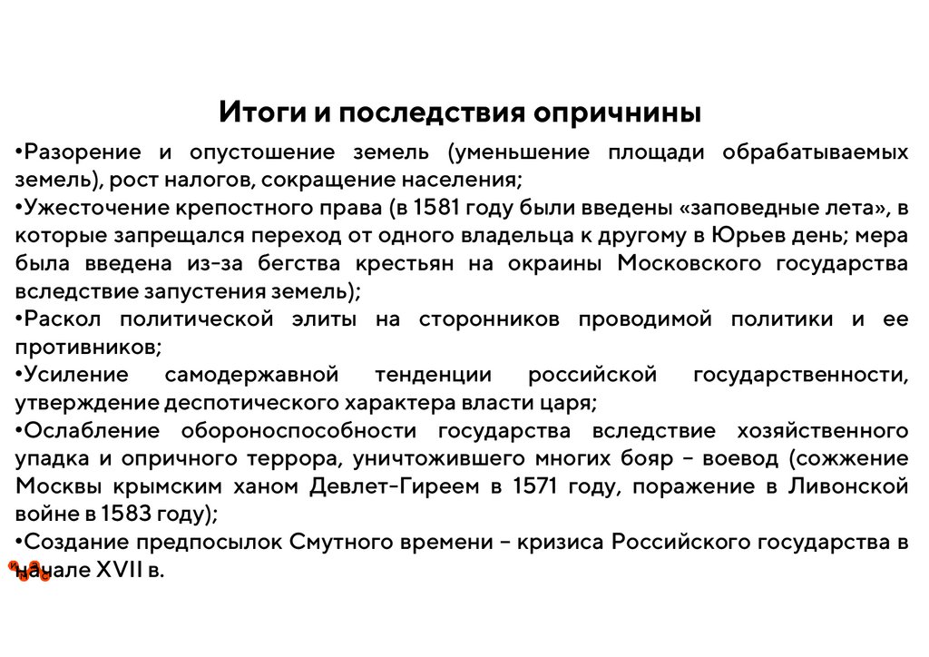 3. Опричнина: причины и итоги.