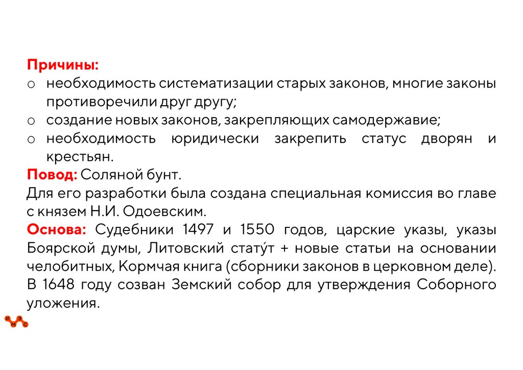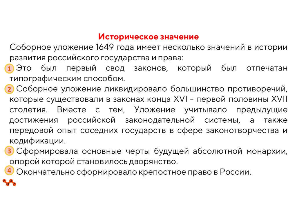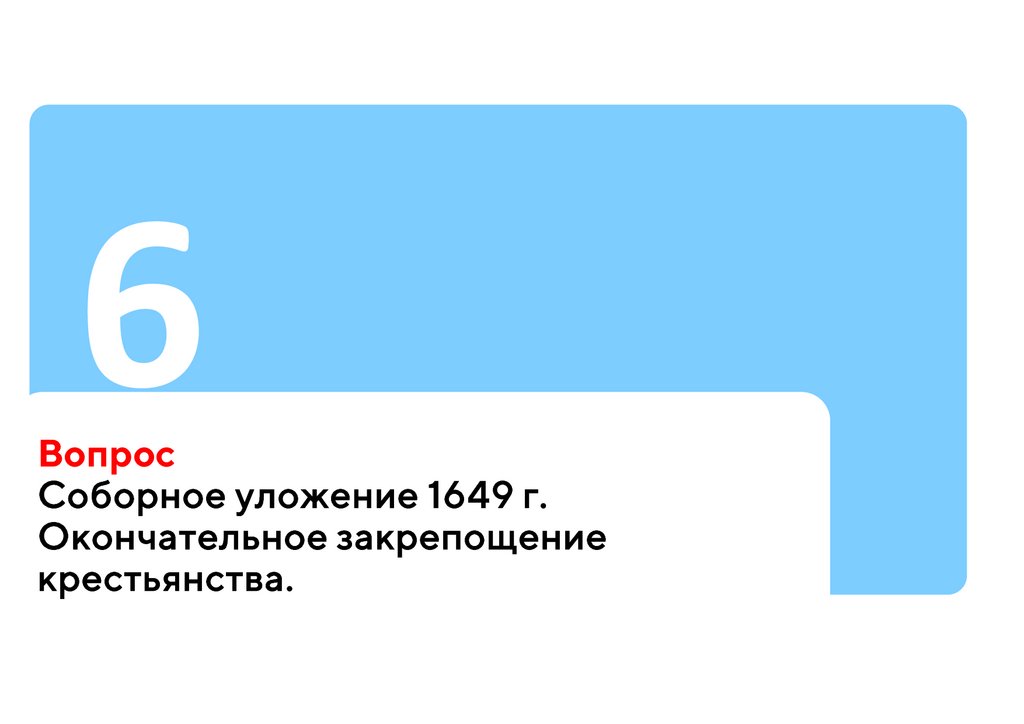 6. Соборное уложение 1649 г. Окончательное закрепощение крестьянства.