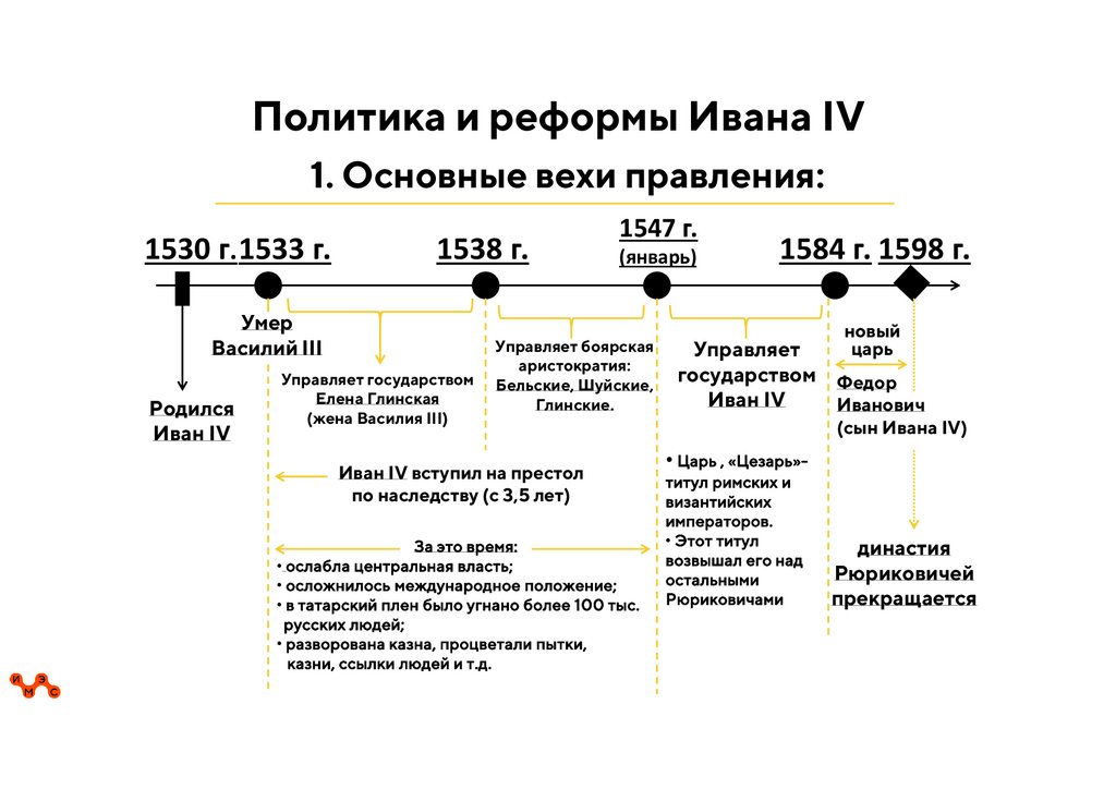 Политика и реформы Ивана IV1. Основные вехи правления: