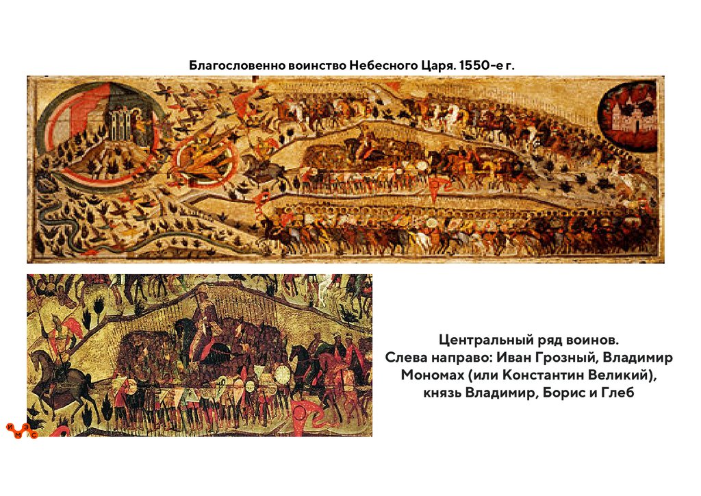 Благословенно воинство Небесного Царя. 1550-е г.Центральный ряд воинов.