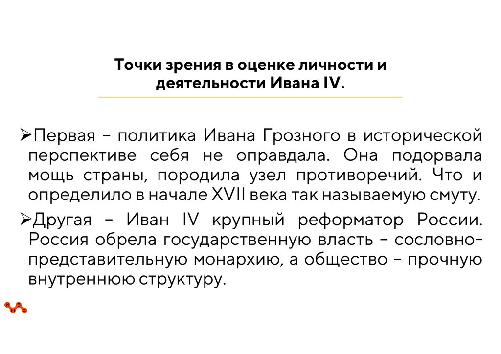 Точки зрения в оценке личности идеятельности Ивана IV.