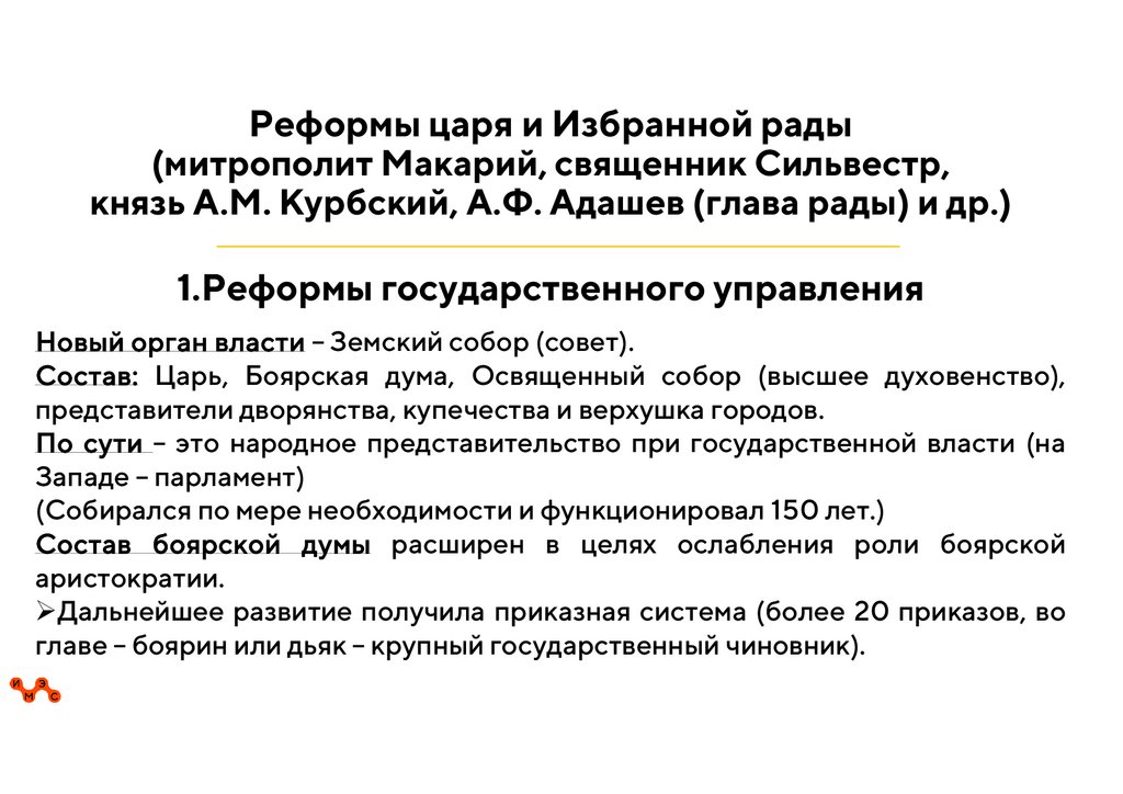 Реформы царя и «Избранной рады»