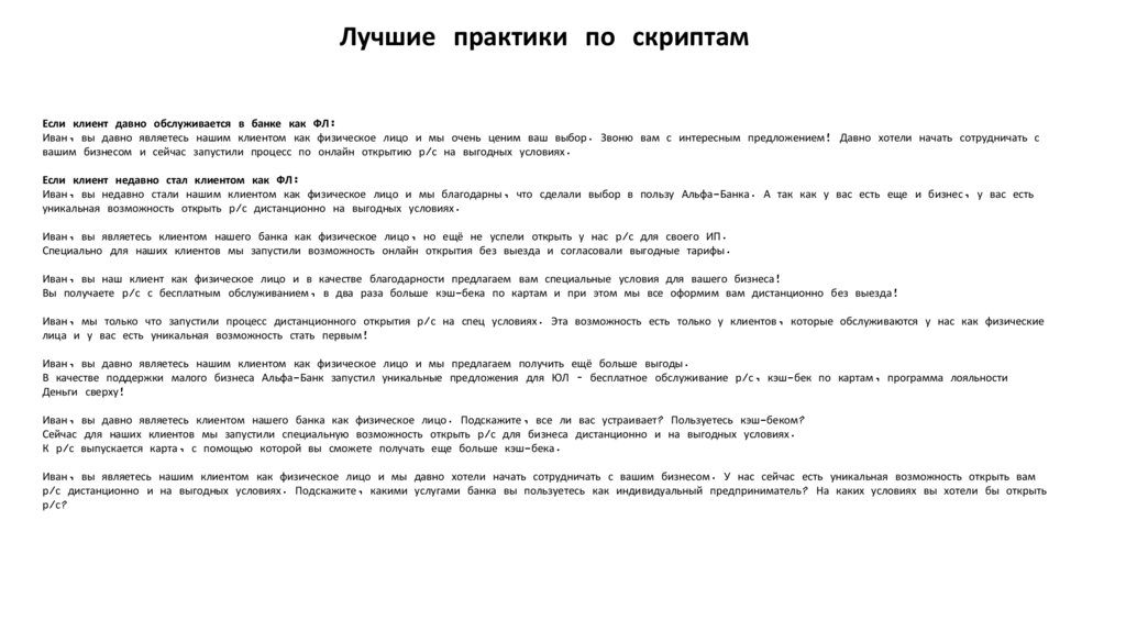 Лучшие практики по скриптамЕсли клиент давно обслуживается в банке как ФЛ: