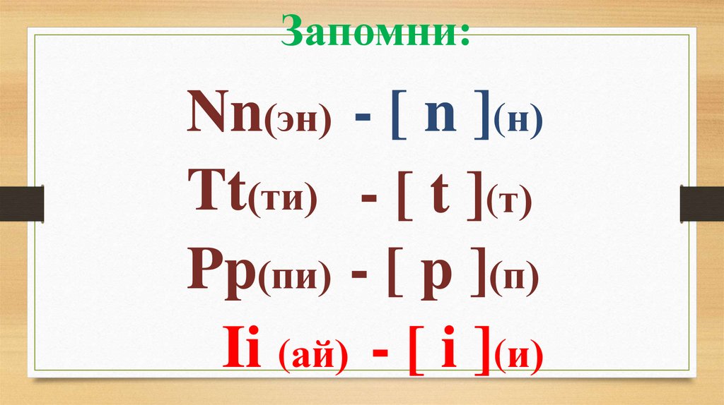 Nn(эн) - [ n ](н)Tt(ти) - [ t ](т)