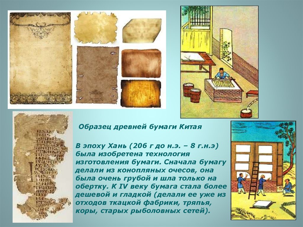 изготовления бумаги. Сначала бумагу