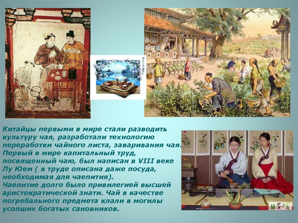 Китайцы первыми в мире стали разводитькультуру чая, разработали технологию
