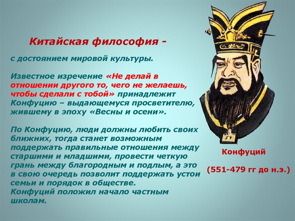 Китайская философия с достоянием мировой культуры.Известное изречение «Не делай в