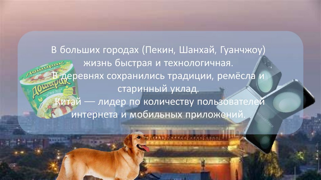 В больших городах (Пекин, Шанхай, Гуанчжоу)жизнь быстрая и технологичная.