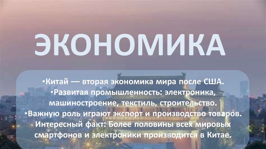 ЭКОНОМИКА•Китай — вторая экономика мира после США.