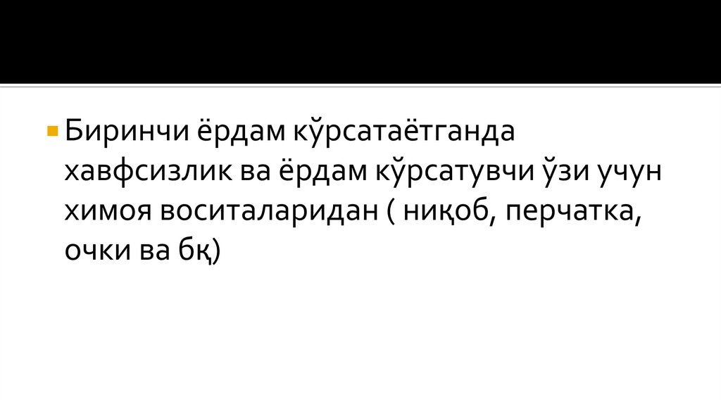 Биринчи ёрдам кўрсатаётгандахавфсизлик ва ёрдам кўрсатувчи ўзи учун
