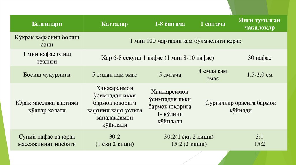 ёрдам кўрсатиш(юрак массажи, сунъий нафас)