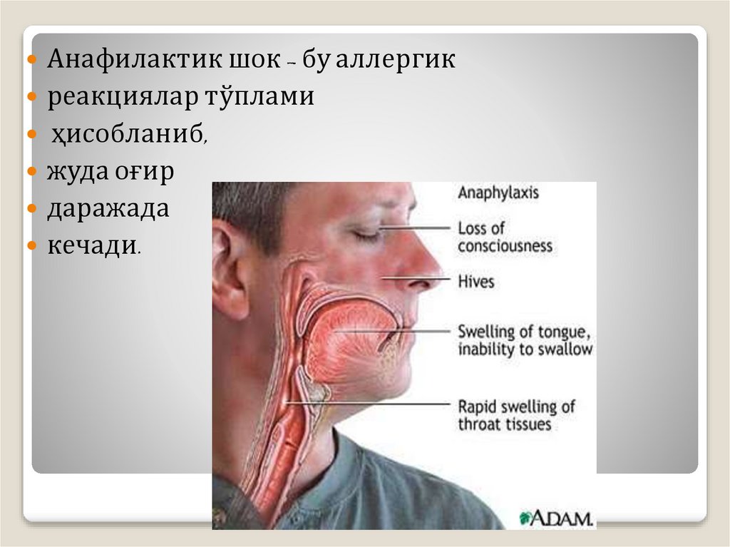 Анафилактик шок – бу аллергикреакциялар тўплами