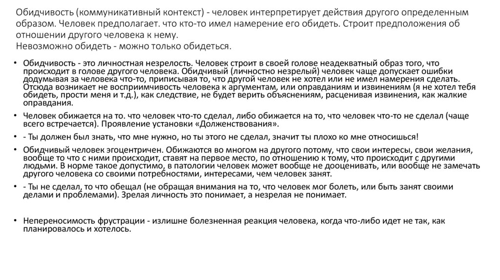• Обида - это агрессия (злость) направленная на другого, но приходящая