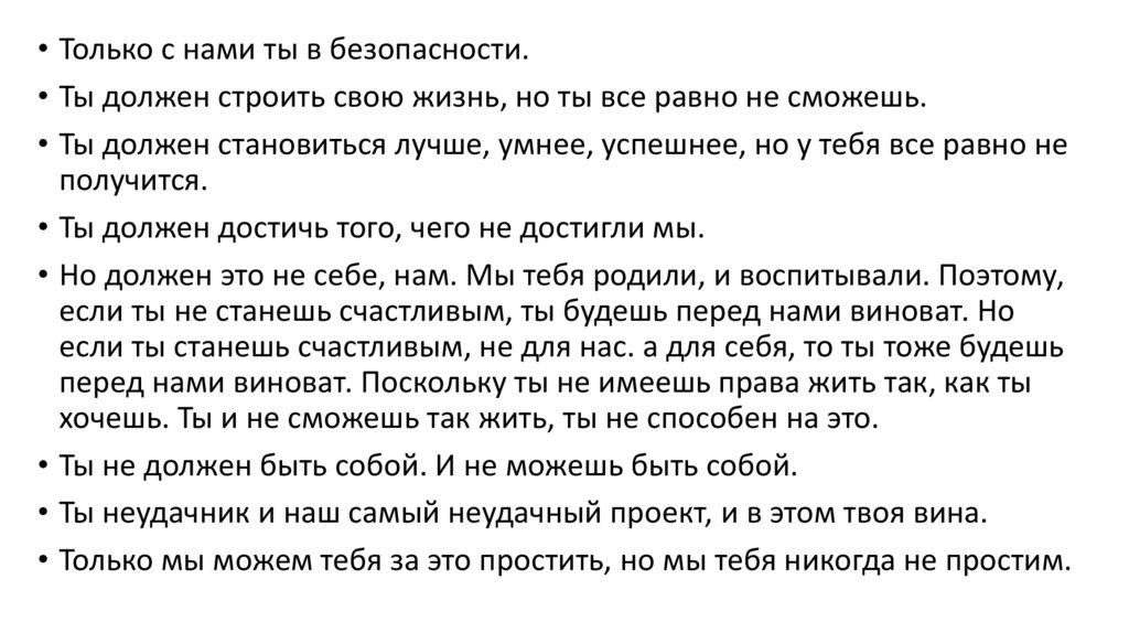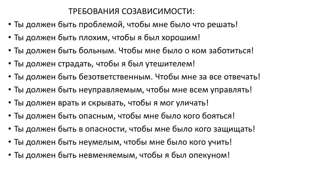 • Ты должен быть невыносимым, чтобы меня жалели!• Ты должен быть предателем, чтобы я был жертвой!