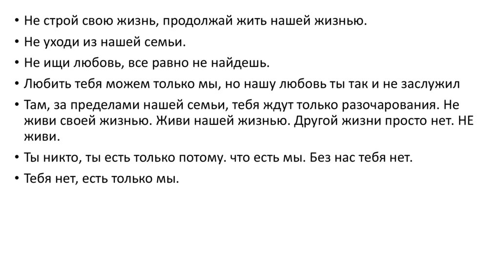 • Безопасности – управляем жизнью другого, чтобы чувствовать свою