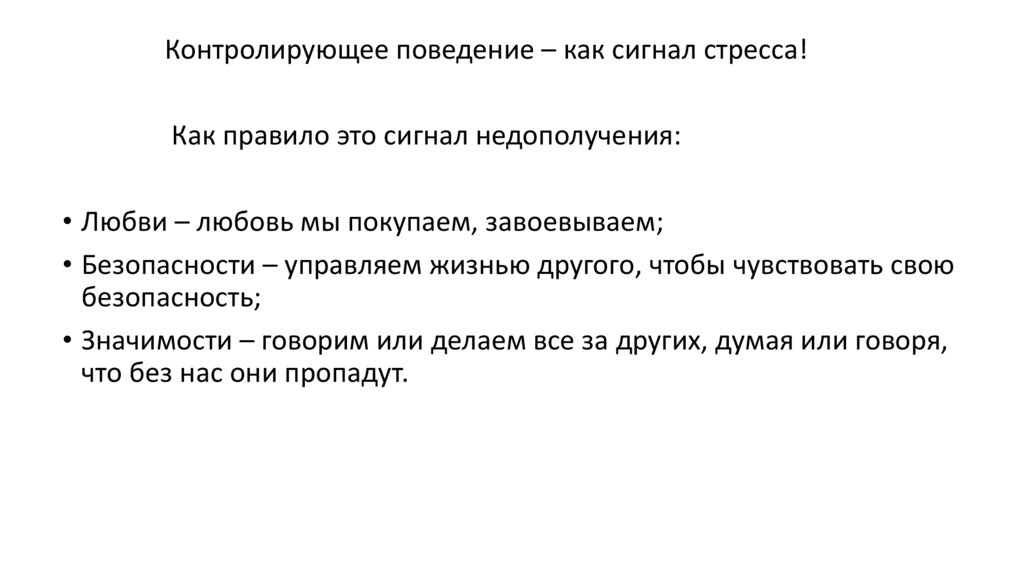 Контролирующее поведение – как сигнал стресса!Как правило это сигнал недополучения: