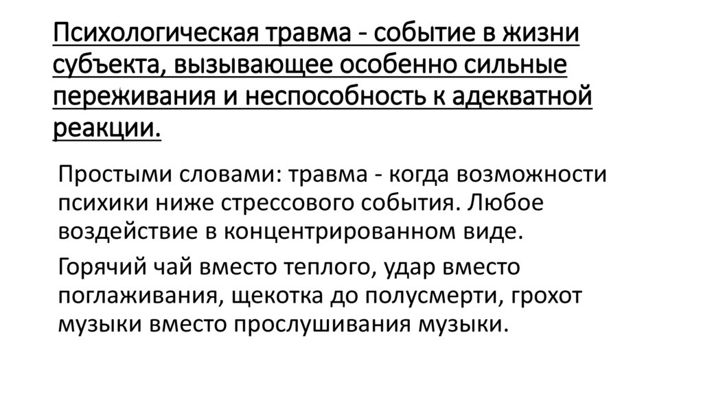 Психологическая травма - событие в жизнисубъекта, вызывающее особенно сильные