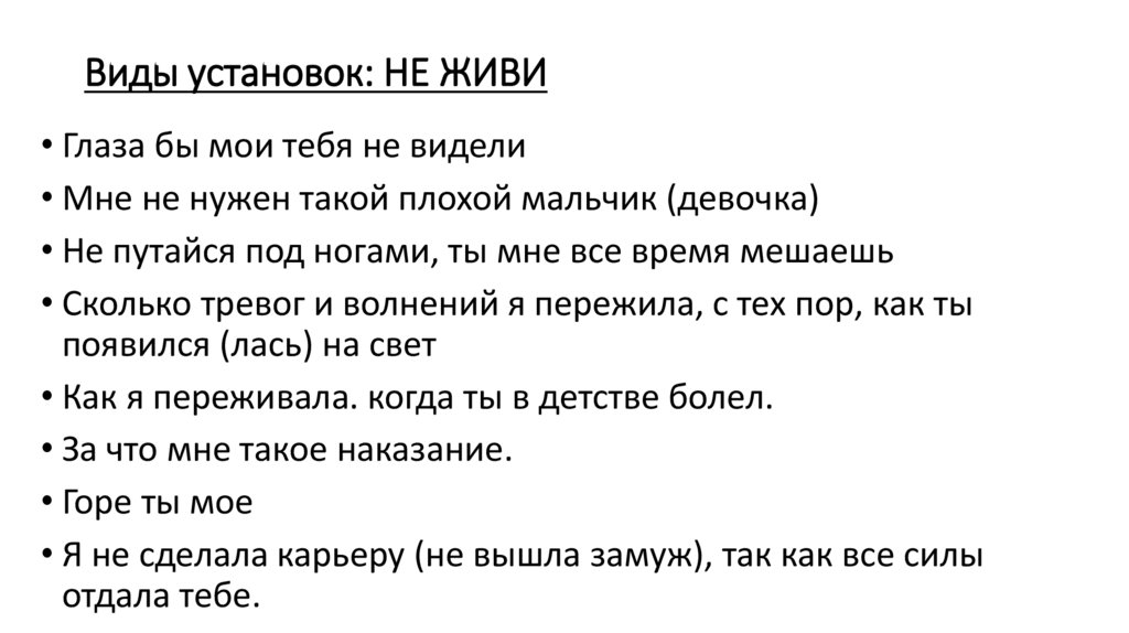 Виды установок: НЕ ЖИВИ• Глаза бы мои тебя не видели