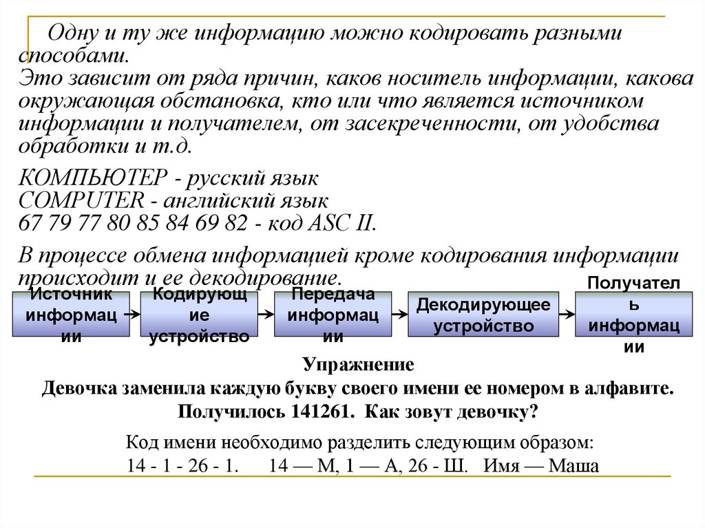 Одну и ту же информацию можно кодировать разнымиспособами.