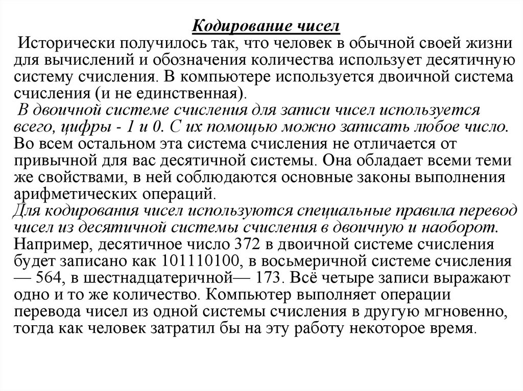 Кодирование чиселИсторически получилось так, что человек в обычной своей жизни