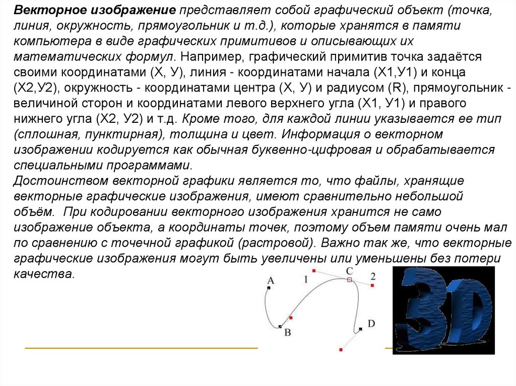 по сравнению с точечной графикой (растровой). Важно так же, что векторные