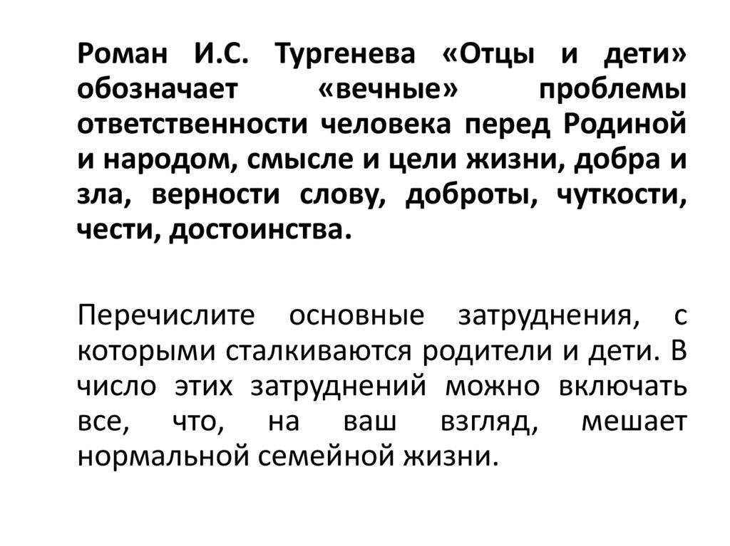 Роман И.С. Тургенева «Отцы и дети»обозначает