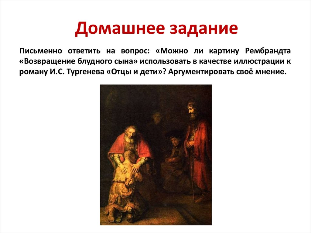 Домашнее заданиеПисьменно ответить на вопрос: «Можно ли картину Рембрандта