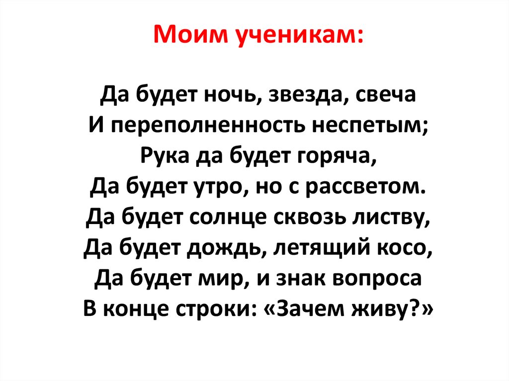 В последних строчках звучит проникновенныйголос автора. Так можно говорить только о