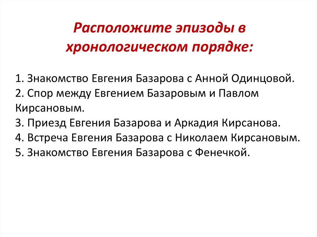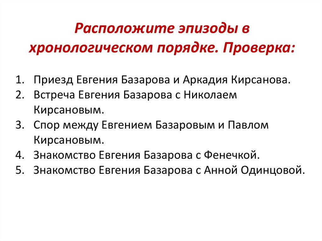 Расположите эпизоды вхронологическом порядке. Проверка: