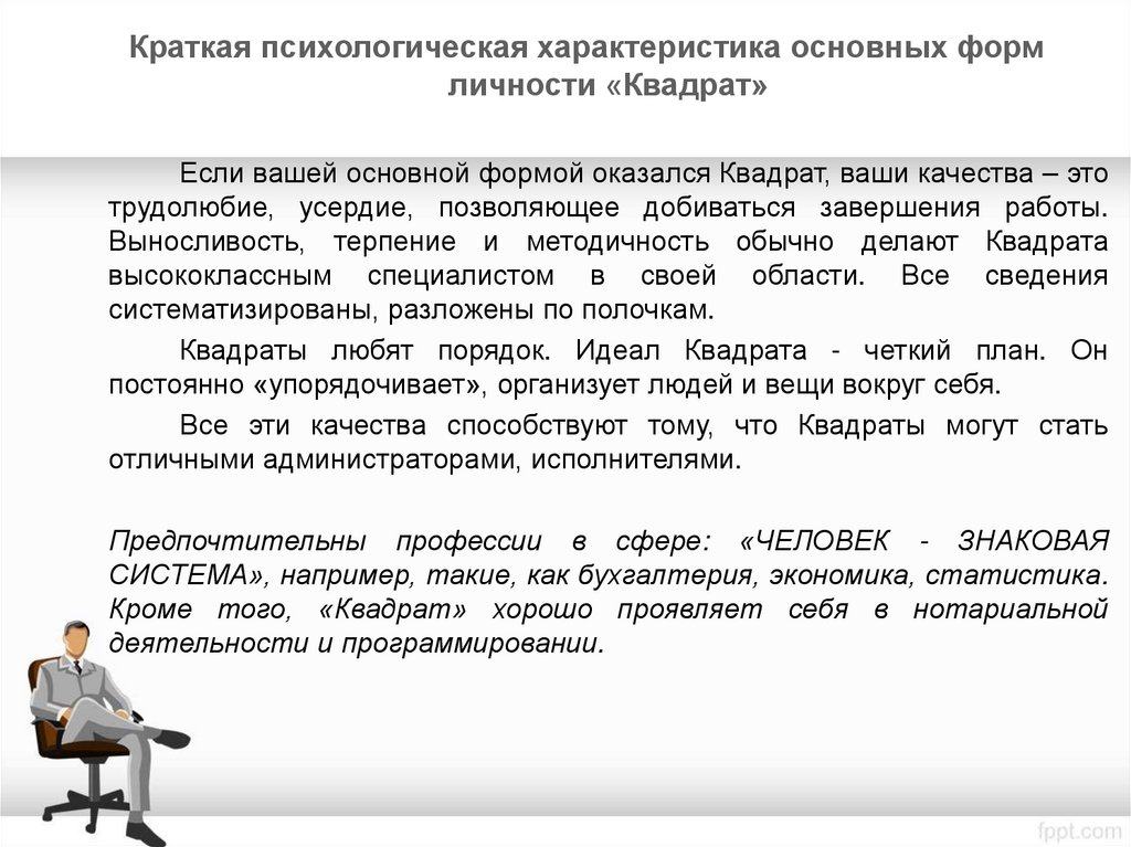 Краткая психологическая характеристика основных формличности «Квадрат»