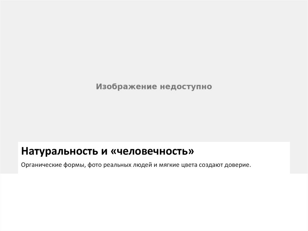 Натуральность и «человечность»Органические формы, фото реальных людей и мягкие цвета создают доверие.