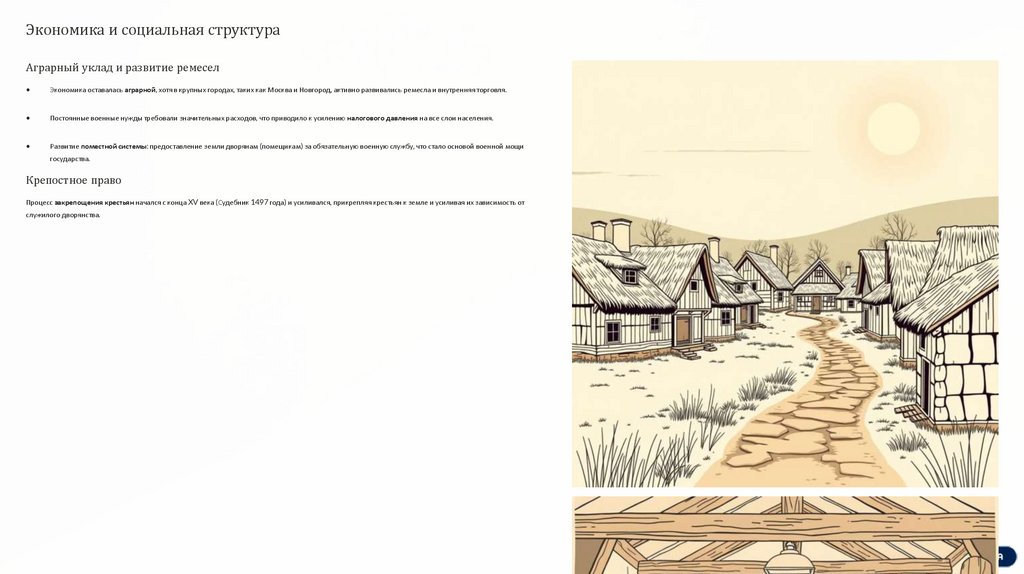 Процесс закрепощения крестьян начался с конца XV века (Судебник 1497 года) и усиливался, прикрепляя крестьян к земле и усиливая их зависимость от