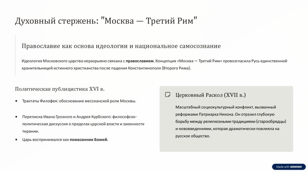 Духовный стержень: "Москва — Третий Рим"Православие как основа идеологии и национальное самосознание