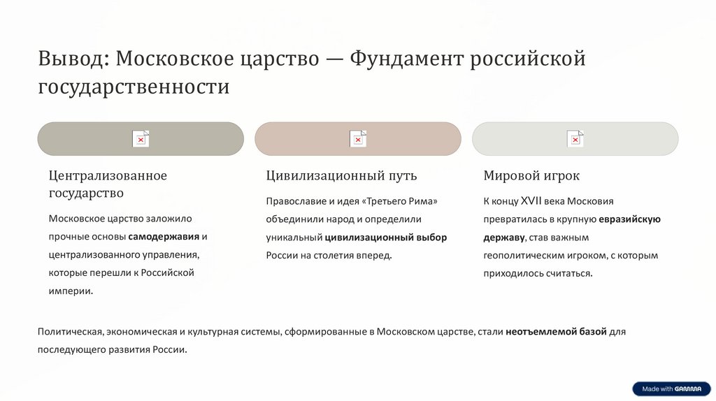 Вывод: Московское царство — Фундамент российскойгосударственности