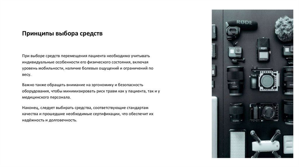 Принципы выбора средствПри выборе средств перемещения пациента необходимо учитывать