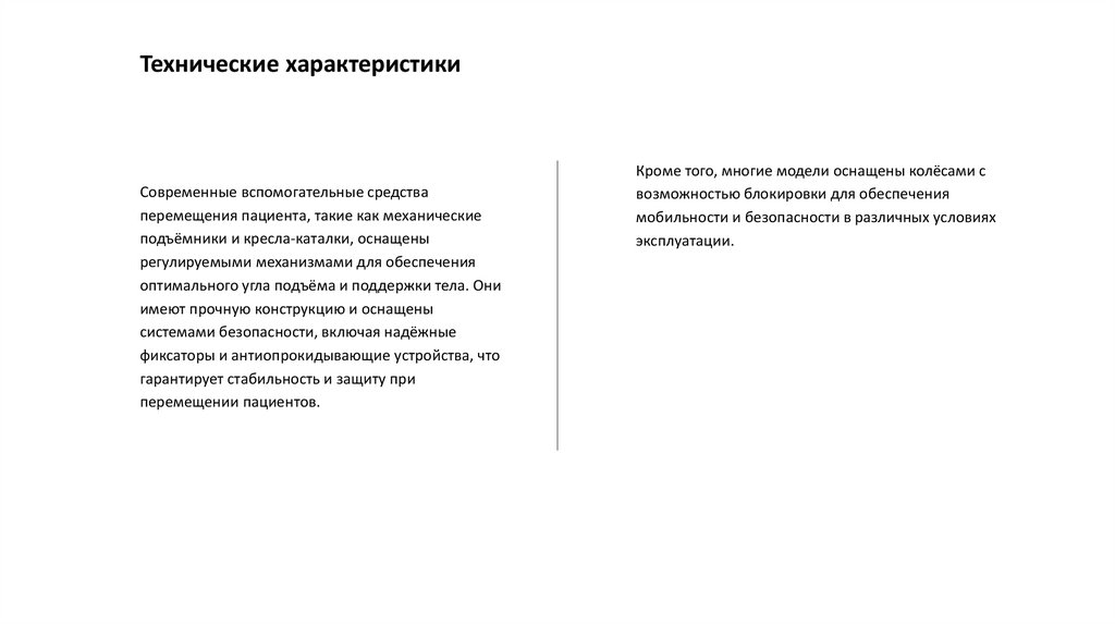 пациентов с ограниченной подвижностью, а также специальные кресла-каталки, оснащённые ремнями безопасности и