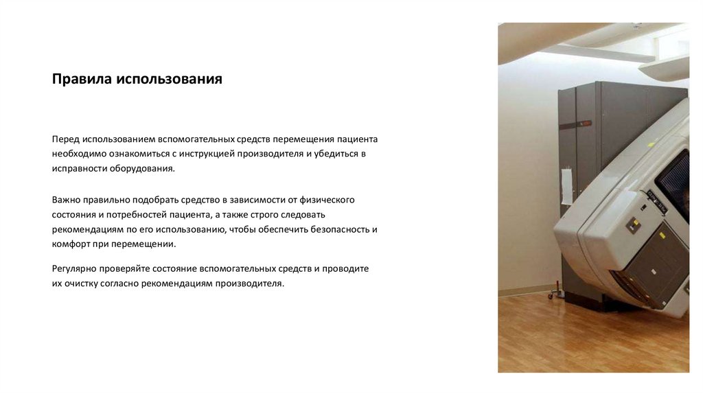 Правила использованияПеред использованием вспомогательных средств перемещения пациента