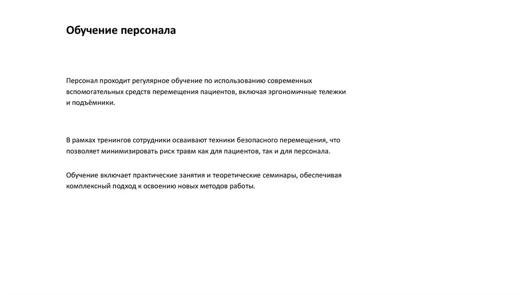 Обучение персоналаПерсонал проходит регулярное обучение по использованию современных