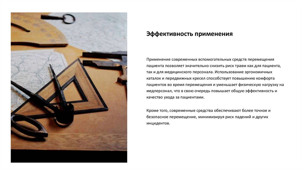 Эффективность примененияПрименение современных вспомогательных средств перемещения
