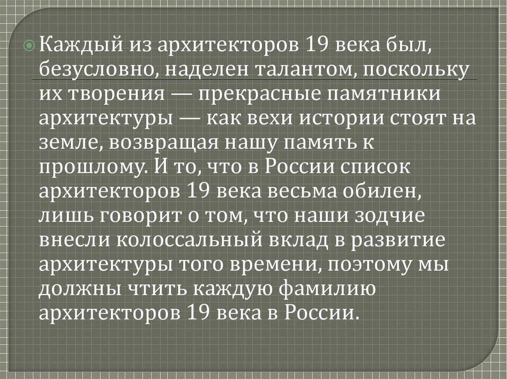 архитекторов, творивших в 19 веке, содержит такие знаменитые
