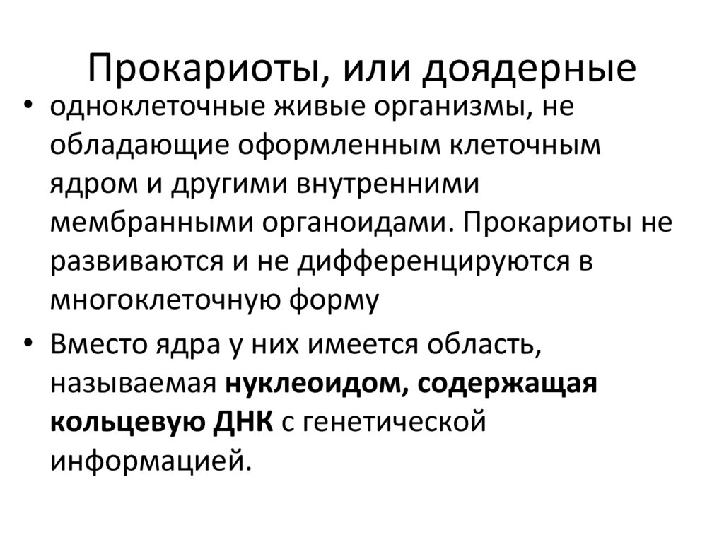 Прокариоты, или доядерные• одноклеточные живые организмы, не