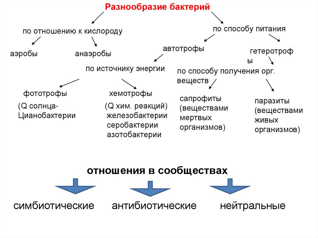 Разнообразие бактерийпо способу питания